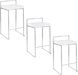 The simple elegance of the original design Birdlake IX White Counter Height Stool, Set of 3 belies its astonishing comfort. Lightweight thin lines create a simplistic fully assembled frame and backrest to support a thick padded velvet seat cushion. A stackable design for easy storage makes this a great stool for entertaining. With its simple stylishness, the Birdlake is sure to match any decor. Available in many color combinations, choose the look that best fits your dining space. Customer assembly required.