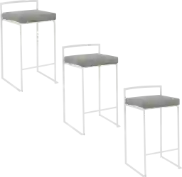 The simple elegance of the original design Birdlake V Gray Counter Height Stool, Set of 3 belies its astonishing comfort. Lightweight thin lines create a simplistic fully assembled frame and backrest to support a thick padded look of leather upholstered seat cushion. A stackable design for easy storage makes this a great stool for entertaining. With its simple stylishness, the Birdlake is sure to match any decor. Available in many color combinations, choose the look that best fits your dining space. Customer assembly required.