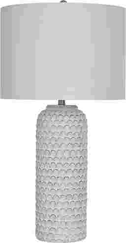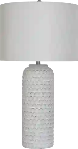 The Birtona White Lamp effortlessly combines functionality with a contemporary aesthetic, making it the perfect addition to any office or living area. Crafted with a sturdy cement base and a fabric drum shade, it's both durable and stylish. It's versatile too, seamlessly fitting in various spaces like a cozy bedroom corner or an entryway table, adding a subtle character to your setting. Complete your rooms with this essential lighting piece that combines practicality and modern style. Partial assembly may be required.
