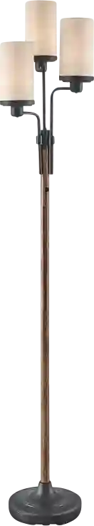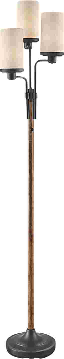 Discover the Birwood Summit Black Floor Lamp, boasting a rustic faux wood and rich dark bronze finish crafted entirely from metal. This lamp is the perfect lighting solution for modern farmhouse, western, or lodge-style room decor. Topped with three oatmeal linen fabric drum shades, it emits a gentle and inviting glow, casting a warm ambiance throughout your space. With its versatile 3-level switch, you can illuminate the one light, two lights, or all three lights simultaneously, offering you flexibility and control over your lighting needs. Partial assembly may be required.