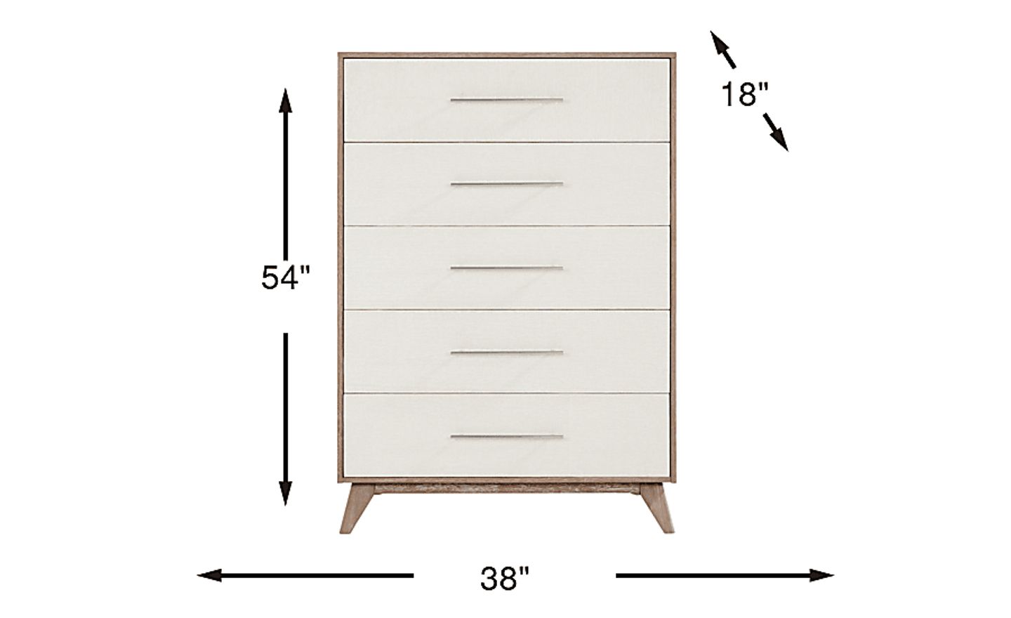 The picturesque beauty of a seaside isle is never far from home when you choose the Biscayne chest. Mixing the coastal ambiance of a beachside getaway with contemporary artisanship, this piece is crafted from wood solids and oak veneers in a natural finish. Each of the five drawers are constructed with front and back English dovetail joints and side-mounted ball bearing glides that make opening and closing the cases a breeze. Store away delicate items without worry thanks to dust proof bottom drawers. Bar pulls in a nickel finish pop against the white tone faces of each drawer.
