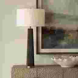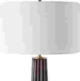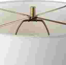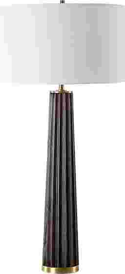 The Bishop Oaks Brown Lamp brings the warmth of nature indoors with its dark stain oak wood base, elegantly adorned with scalloped edges. Accented with plated antique brass finishes, this lamp infuses any space with a touch of rustic charm and a dash of sophistication. The round hardback drum shade is a white linen fabric. Partial assembly may be required.