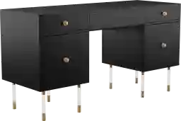 Strike gold and achieve success with the Bistineau black writing desk. A minimalist workstation in a black finish lets gold feet and hardware truly shine, proving that sometimes what glitters can be gold. Two sets of storage drawers house office supplies both big and small, while a spacious desktop offers plenty of valuable workspace. Guests will think you've got the golden touch when you place this desk in your home office or open concept living space. Customer assembly is required.