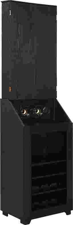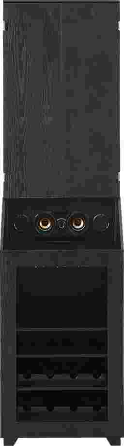 The Blai dartboard cabinet is a multi-functional accent for your game room. Built with a high-quality oak veneer in a grained, black finish, this piece is as durable as it is sleek. The cabinet doors open to reveal two scoreboards and an LED-lit dartboard, creating the perfect setting to play a classic pastime. Above the spacious open shelves and wine racks are bluetooth speakers that further enhance your game room experience. Customer assembly is required.