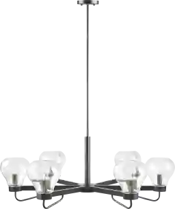 The Blaine Cave Black Chandelier combines classic and modern styles to elevate your decor. This chandelier features 6 up-lights with distinctive clear bowl-shaped shades to create a unique modern look. The black metal finish on frame adds that classic touch to complete the design. Professional installation by an electrician is recommended.