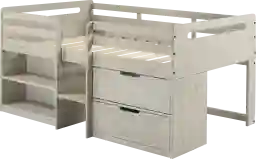 The compact design of this Blanchard bed makes it a perfect fit for rooms that could use a little more space. This loft includes extra storage options for toys or clothes. The solid pine craftsmanship gives this bed superior durability. Customer assembly is required.