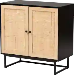 Give your interior a breath of modern flair with the Blesch black accent cabinet. This lovely piece consists of a wood frame resting atop a solid metal base. The doors open to reveal two spacious shelves that assist in organizing busy areas while round doorknobs lend a smooth geometric display. The Blesch features woven rattan embellishments for a touch of classic artistry. Due to the nature of the natural materials used in this product, it may have variations in areas such as, but not limited to, color, pattern, grain and texture. The hair-like strands of rattan/rattan-fiber are common due to the nature of the material. Customer assembly is required.