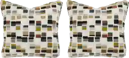 Adding a splash of vintage-inspired cool with the Blocks pillow pair is as simple as easing back and sipping an old-fashioned. Beige pillows featuring raised squares of olive green, sepia, gray, black and copper make a crisp midcentury modern style statement. Upholstery: 53% Cotton, 38% Polyester, 9% Rayon.