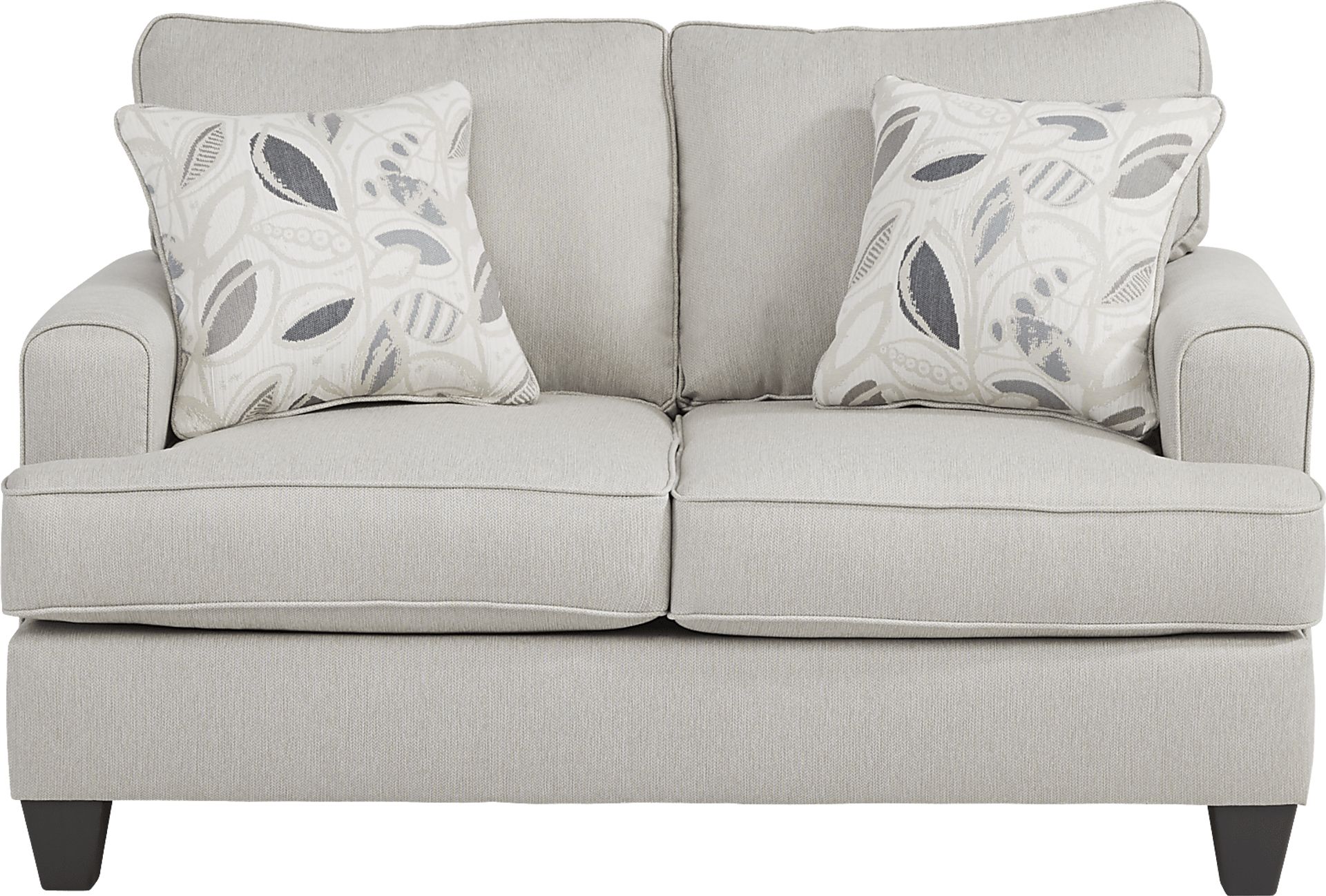 Modify your space with stylish seating for two with the Blooming Grove loveseat. This attractive piece is a breeze to maintain thanks to the oatmeal easy-to-clean upholstery. Welted seams give this loveseat a tailored look while pyramid legs in a black finish add a nice contrast. Upholstery: 100% Polypropylene.