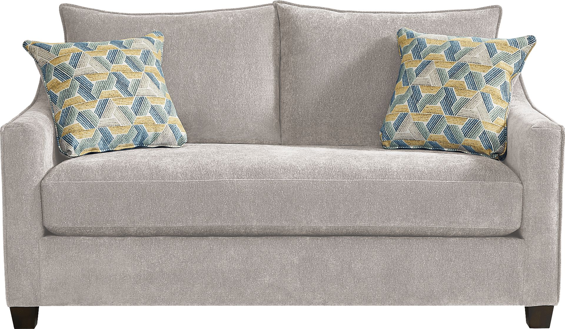 With the calm energy and relaxing vibe of a breath of fresh air, the Bloomington loveseat has the makings of an all-time classic updated with a twist of modern flair. Upholstered in soft chenille fabric, this piece features a single, bench-style seat cushion with loose back cushions and sloped arms accented by welted outer seams. Accent pillows feature an eclectic medley of rich tones that make the platinum color of the loveseat pop with excitement. Upholstery: 100% Polyester.