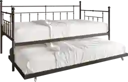 Bring an aura of classic elegance to your interior with this stunning Victorian-inspired Blossomtube twin size daybed with trundle. The ball finials and timeless design enhance the appearance of any room. Built with a high quality metal frame and solid wooden slats, this daybed provides stability and longevity. The easy roll-out twin-size trundle bed offers two sleeping options, making it a practical solution for small living spaces. The wooden slat base promotes air circulation, keeping your mattress, sold separately, fresher. This multi-functional daybed with trundle offers both seating and sleeping options in one piece, making it ideal for maximizing space. The included slat kit eliminates the need for a box spring, making assembly easy. The surface of this metal daybed is finished with a powder coating to prevent rusting, increasing its durability. With all hardware and instructions included in one convenient box, this daybed is simple to assemble. Customer assembly is required.