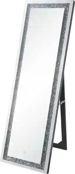 This mirror is strategically designed to enhance light and perceived space. The metallic silver finish and beveled glass edges are particularly effective at catching and refracting both natural and artificial light across a room. Placing this floor mirror opposite a window can significantly brighten a dim space, while its 60-inch vertical profile draws the eye upward, making standard ceilings feel higher and rooms feel more expansive.