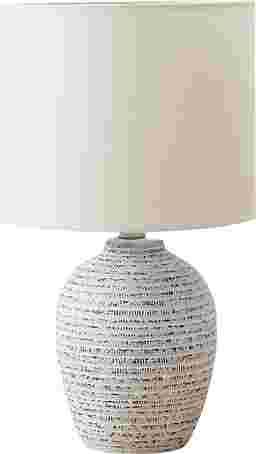 Here is the perfect blend of contemporary style and functional elegance with the Bluffoods Beige Lamp. This decorative lamp features an elegant textured finish base in beige and topped with a modern ivory fabric shade. When placed on your nightstand, gracing your end or side table, or brightening a console table, this accent lamp is sure to create an inviting ambiance. Partial assembly may be required.