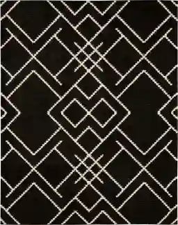Absolutely. This rug’s machine-woven construction and resilient polyester material make it an excellent choice for active families. Polyester is naturally stain-resistant and soft to the touch, providing a comfortable surface for children to play on while standing up to the demands of pets. Additionally, the intricate geometric pattern and black-and-neutral color palette are effective at subtly disguising minor everyday wear.