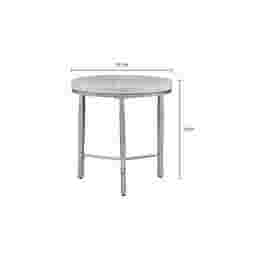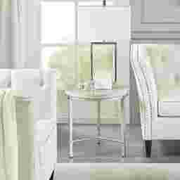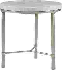 The Boddens end table provides a simple, yet beautiful addition to your living room decor. This round end table features a marble table top, in rich cream hues, for a chic transitional look. The sturdy metal legs and frame flaunt a silver painted finish to complement the marble top. Elegantly designed, this end table adds a sophisticate touch to update your home. Customer assembly is required.