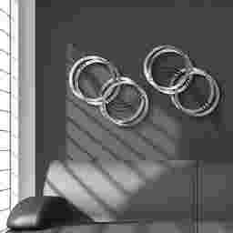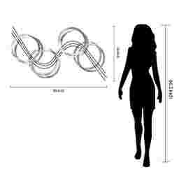 There is a peaceful flow to the Boggio silver wall decor, which gives it a strange quality. The work could be described as water, or like sheet music, or simply like nothing else, a series of bubble-like rings connected by flowing wires. The texture of the metal makes the piece feel modern and synthetic, but theres also a natural quality to the way it effortlessly drifts. The piece creates a sense of motion but is gentle and peaceful. This piece also allows the colors of the wall behind to show through.