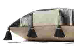 Yes, this pillow is highly versatile for bedroom styling. At 22 inches tall, it serves as an excellent middle layer for a bed, sitting perfectly between large Euro shams and smaller lumbar pillows. The playful tassels add a layer of soft texture that helps soften the look of a structured headboard.