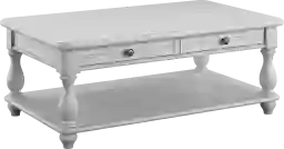 While the terms are often used interchangeably, a "cocktail table" typically refers to a piece that is slightly more formal or decorative. This rectangular table, with its scored fronts and antique pewter knobs, offers a sophisticated yet casual "seaside" feel that works perfectly for both serving guests and everyday lounging in a contemporary living room.