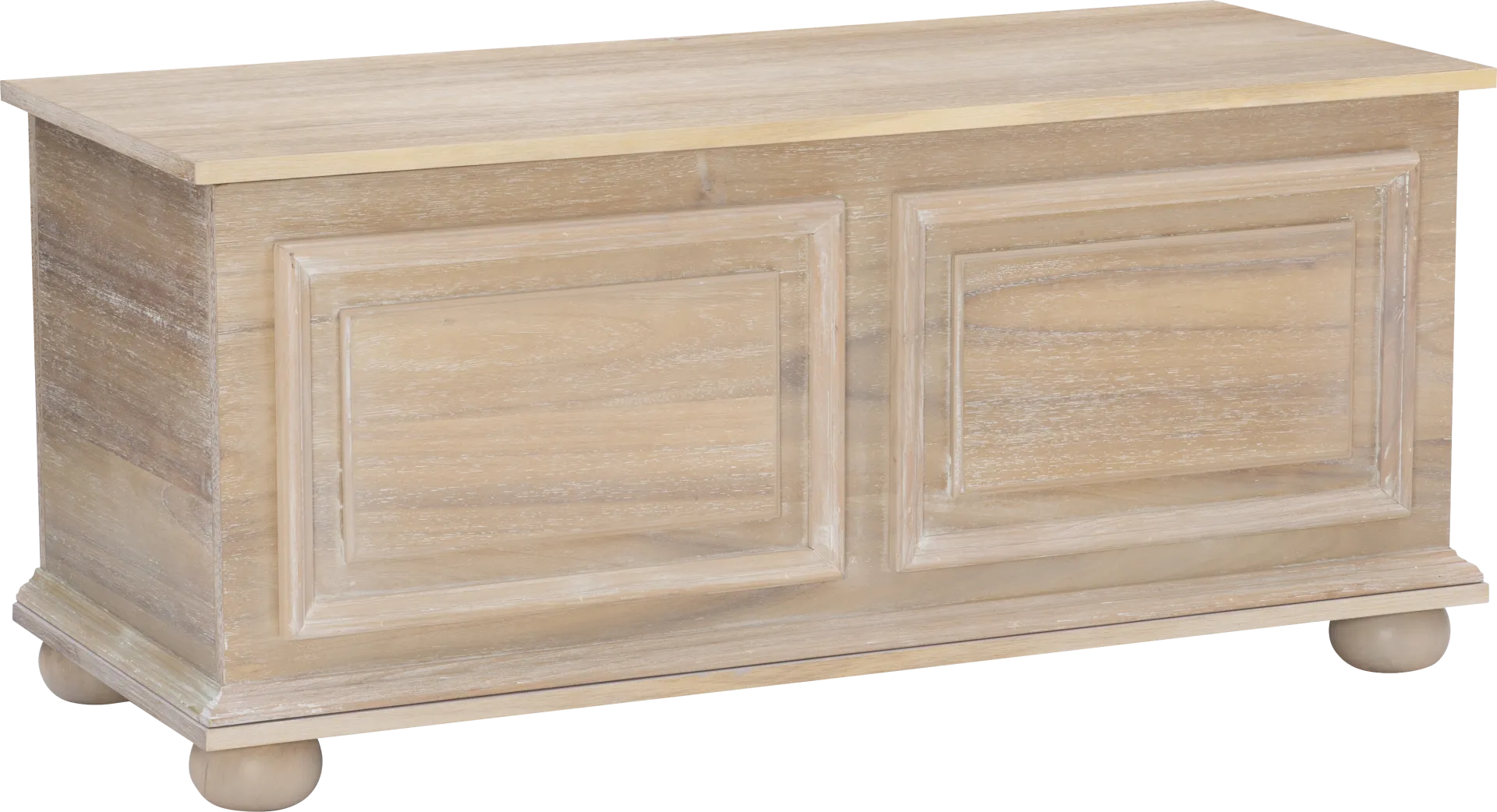 Measuring 18 inches in height, this chest is an ideal height for use at the foot of a bed or as a functional bench in an entryway. Its contemporary design, featuring classic bun feet and decorative raised panels, allows it to serve as both a sturdy seat for putting on shoes and a substantial storage solution for extra pillows and bedding.
