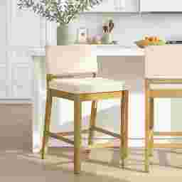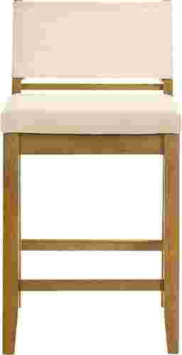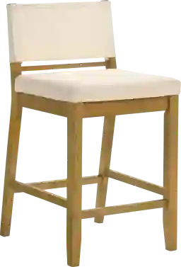 The Bolfell counter stool captures the quiet sophistication of modern simplicity, a balance of clean lines, natural textures, and timeless comfort. Designed to complement both contemporary and transitional interiors, Bolfell offers an understated elegance with its crisp linen white upholstery and smooth solid natural wood frame. This stool effortlessly blends the warmth of wood with the light, airy feel of fabric, creating a barstool that's as versatile as it is inviting. Crafted with attention to everyday comfort, the Bolfell stool features a rectangular backrest and a plush cushioned seat, providing just the right amount of support while maintaining a sleek silhouette. Its armless, open-frame design allows for easy movement and a tidy fit under counters and bars, making it ideal for compact layouts. The straight-leg base with supportive crossbars ensures stability and comfort, offering a sturdy place to rest your feet without compromising the stool's refined profile. Bolfell achieves