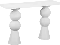 The Bolleana white sofa table elevates your space with sculptural totem bases and resin tops. The eclectic form of the legs is highlighted by the biomorphic surface texture, set against the sturdy and substantial hand-poured opaque resin tabletop. This combination creates a stylish monochromatic aesthetic while introducing captivating textures to the room. Customer assembly is required.