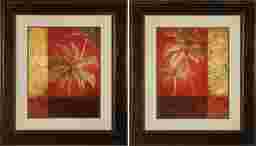 Stylized palms on a red ground with a small silver of vintage map. Double matted with sand and germanchocolate under glass in a brown frame with copper-tone highlights. Bon Voyage - Set of 2 Framed Artwork Allow 2-4 weeks for delivery direct to customer's home.