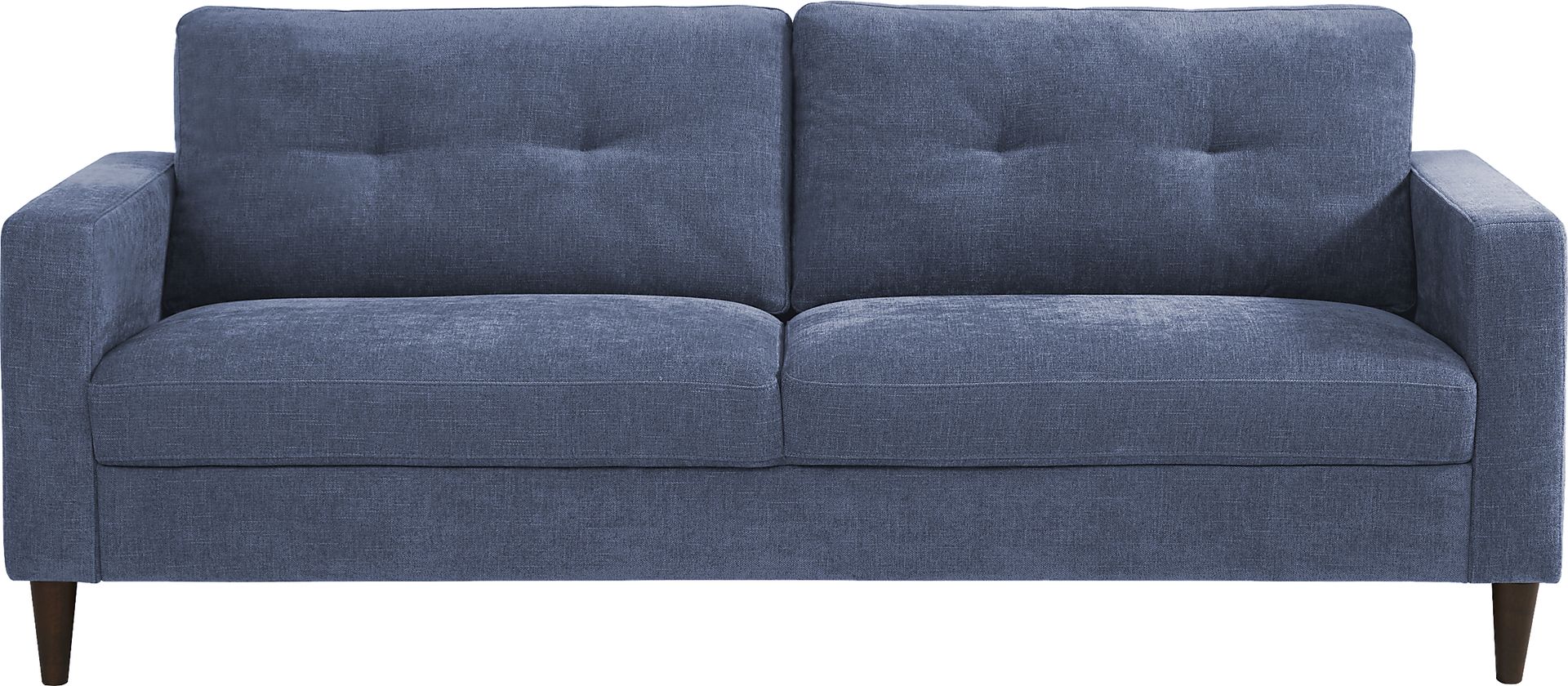 Grab a fun and contemporary style for your living room with the Bonavista sofa. Featuring chic track arms and tufted backs combine with the beautiful blue color of this sofa for a wonderful look. Sleek, tapered wood legs complete this great sofa. Upholstery: 100% Polyester. Partial customer assembly required.
