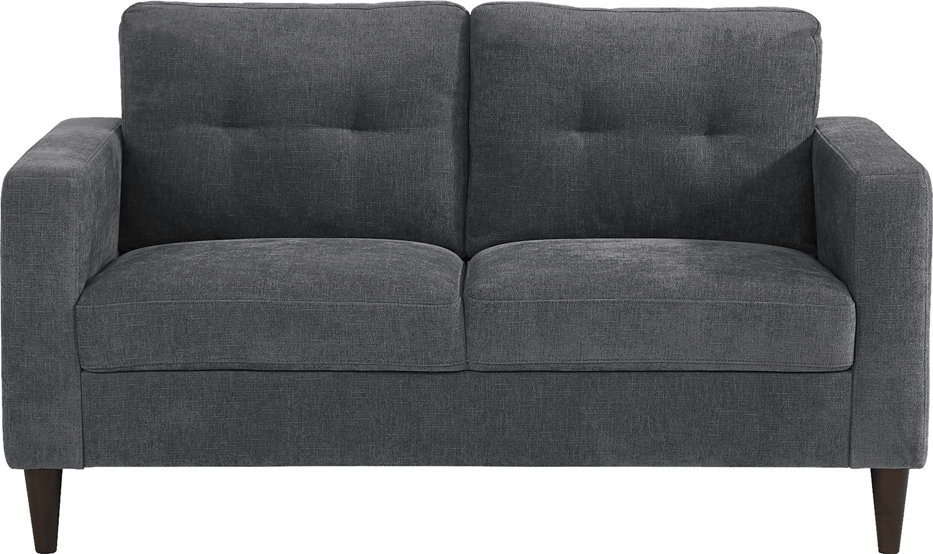 The Bonavista loveseat brings a comfortable and stylish seating option to your living room. Sleek track arms and tufted backs make for a cool, contemporary look that's highlighted by the beautiful gray color of this piece. Upholstery: 100% Polyester. Partial customer assembly required.