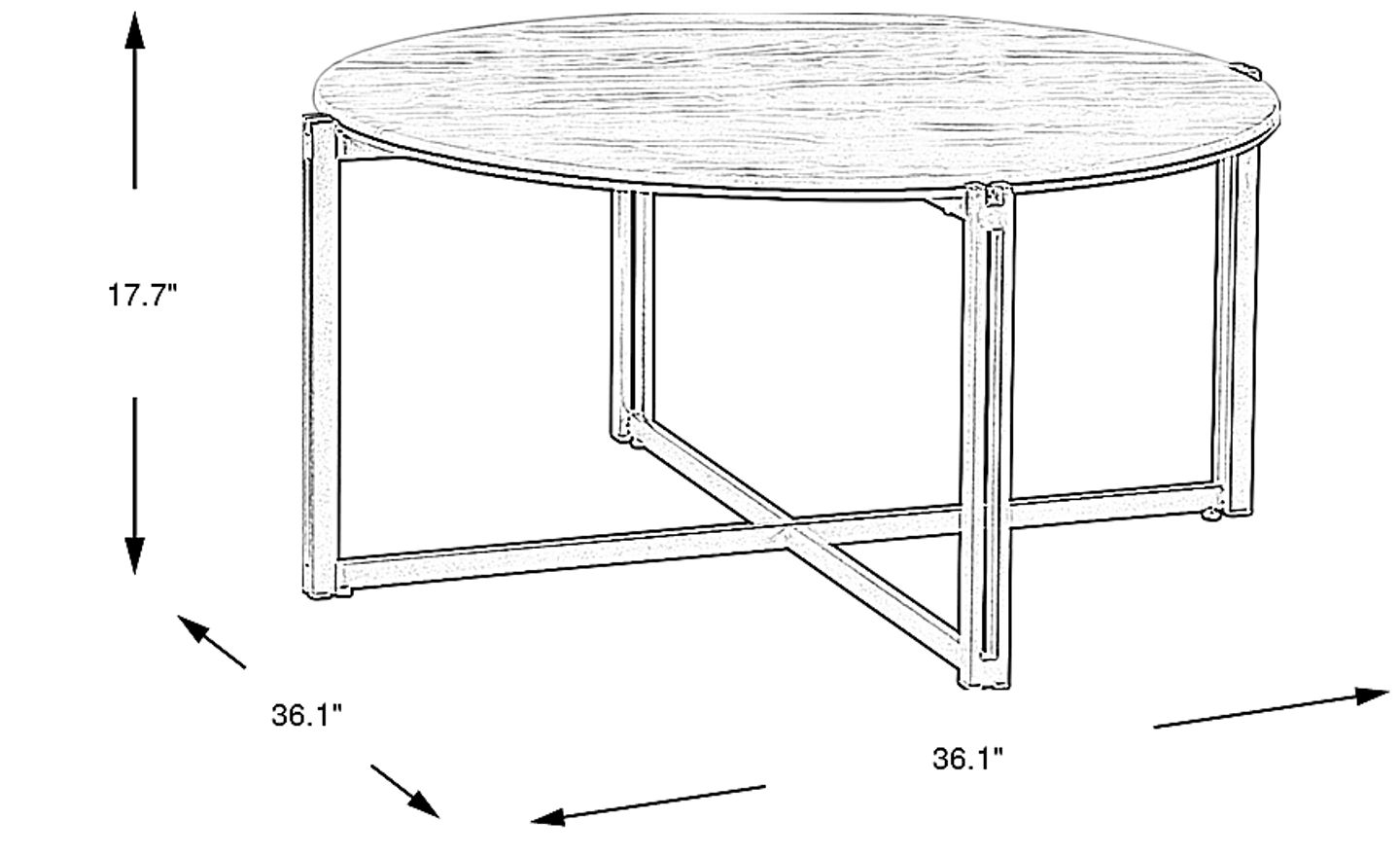 While these terms are often used interchangeably, a "cocktail table" typically refers to a slightly more formal version of a coffee table designed for social settings. This round table, with its champagne-finished metal base and marbled top, serves as an elegant focal point for contemporary living rooms, dens, or social spaces where style and functionality meet.