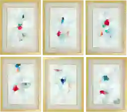 Deckled edge paper features a hand-cut, feathered border that provides a sophisticated, artisanal texture typically found in high-end galleries. In this set, these organic edges are elevated with hand-applied gold foil, which catches the light to add depth and a sense of opulence. This combination of raw, textural paper and refined metallic detailing establishes a high level of craftsmanship that makes each of the six abstract paintings feel like a unique, curated find.