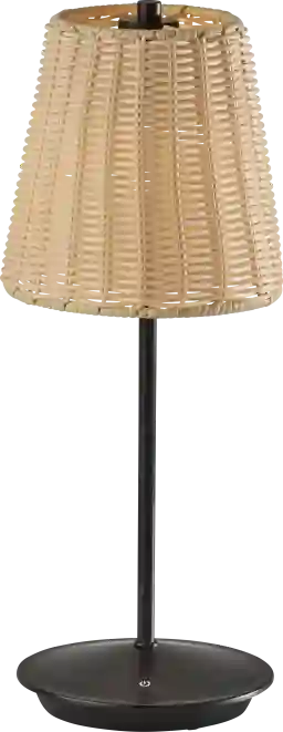 Introducing the Bortle Vista Black Outdoor Lamp, a versatile lighting solution designed to enhance both indoor and outdoor spaces with its sleek design and practical features. With a contemporary black finish and a stylish plastic rattan shade, this lamp effortlessly complements any decor style. Standing at 15 inches tall, it's the perfect size for bedside tables, patio settings, or outdoor gatherings. The lamp features a convenient 3 Level Touch Dimmer Switch, allowing you to adjust the brightness to suit your needs and set the desired ambiance. Powered by a rechargeable 1.5W LED, this lamp offers portability and flexibility, making it ideal for use anywhere you need it. Plus, with an IPX4 location rating for outdoor use, you can enjoy reliable performance even in outdoor environments. Partial assembly may be required.