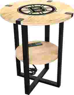 The Boston laser etched round side table features a modern design that seamlessly blends with various decorative styles. It offers a convenient functionality for charging up to four devices at one time. The 2-Tier shelf also provides ample space to store your TV remote and other small items. Whether you are a Bruins fan or simply appreciate well-crafted furniture, this side table is a versatile addition to any room. Customer assembly is required.