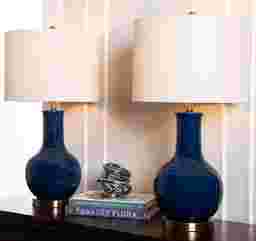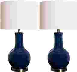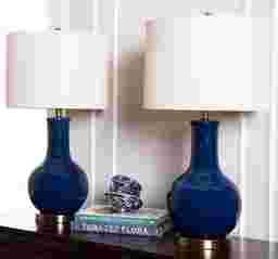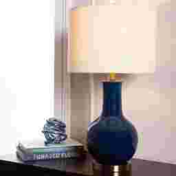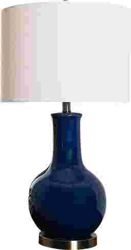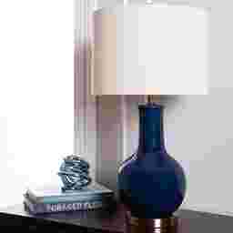 Give your space a pop of color with the Bourke lamp. A sleek gourd-shaped silhouette is finished in a lovely navy blue high-gloss finish. The included ivory shade complements the base to create a contrasting appeal suitable for both modern and traditional spaces. Customer assembly is required.
