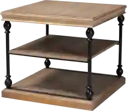 Endow your common area with the Bouverie gray end table as a timeless yet efficient space anchor. This stunning piece takes inspiration from industrial design with a solid metal frame fitted with wood shelves. Three tiers of square-shaped shelves offer space for both storage and daily use while radiating soothing tones from the wood. The Bouverie features turned metal legs for excellent stability and support while lending an ornate feel. Beautifully crafted edges form a superb silhouette, making the Bouverie a remarkable household accessory. Customer assembly is required.