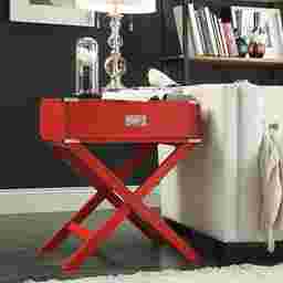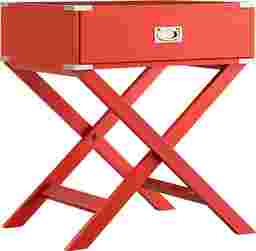 Add a pop of color to any space with the Bowen red accent table. Made of natural wood and structured to fit flexibly against any fixture. A convenient drawer with metal hardware is stationed perfectly for storage.