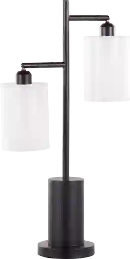 Brighten up a dark corner with the Boylston Avenue lamp. The black metal pedestal base features two individual can-style lights, which can be used for task lighting or added ambiance. Each light is adjustable and is housed in a white shade. Partial assembly may be required.