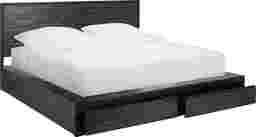 Modern minimalism at its luxurious finest, this Bracon storage platform bed elevates any bedroom's aesthetic with style and substance. Emmarose features two discreet drawers for under the bed storage, while its chocolate brown acacia wood and black iron frame make it a favorite of penthouse designers. Sized for a standard king bed. No box spring required. Customer assembly required.