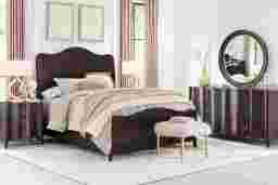 Filling space like the calming, effortless flow of a beautifully composed melody, the Bradbury bed transforms your room into a sanctuary of modern sophistication with its elegant curves and refined details. Crafted with cherry veneers in a rich brown finish, this contemporary piece features a panel headboard and footboard with a wavy frame, creating a soft yet fortified silhouette. Mattress and foundation (if required) sold separately.