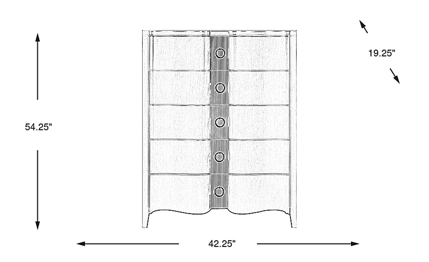 Absolutely. This vertical "tallboy" chest is specifically designed to maximize storage capacity without overwhelming your floor plan. With a width of 42.25 inches and a height of 54.25 inches, it offers the same storage volume as many wider dressers while maintaining a much smaller footprint. This makes it an ideal storage solution for urban apartments, guest rooms, or smaller suburban bedrooms where walkway clearance is a priority.