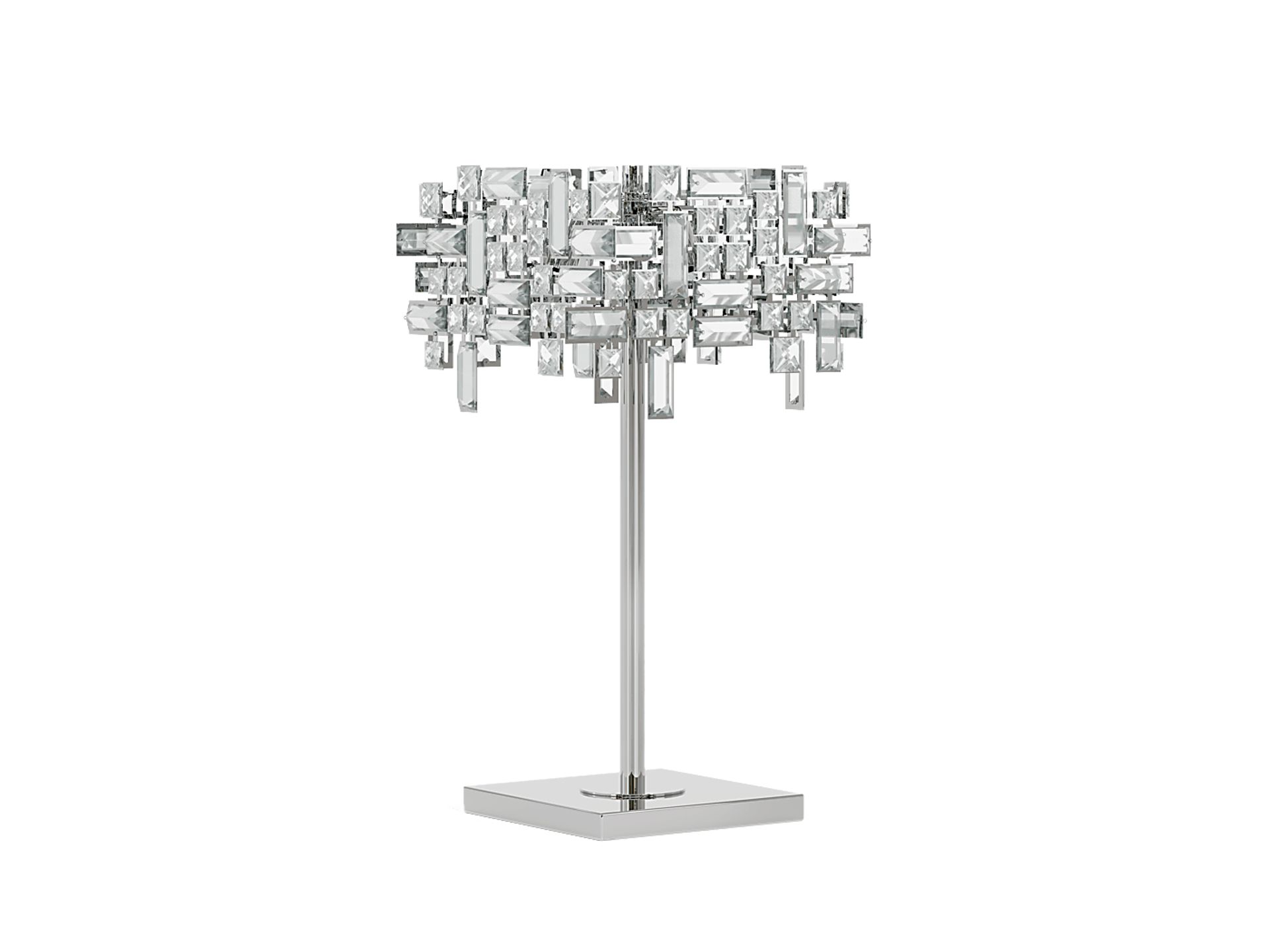 Add a glamorous look to your lighting with the Bradhurst Bay lamp. Sleek in appeal and contemporary in style, this piece boasts an abstract collection of glass for a crystal-inspired look. Its metal construction ensures durability as the silver finish pairs well with existing decor. This lamp features an on and off switch and can accommodate a max 110-120 watt light bulb.