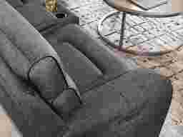 The sleek design and soothing feel of the Bradshaw Place living room brings harmony and balance to endless nights of intimate, relaxed gatherings. Traditional in style, this sectional features soft, padded arms and attached seat cushions for a luxurious touch. Contrast welting draws the perfect amount of attention to the smooth dark gray upholstery while delivering casual sophistication, while a dual power reclining mechanism allows personal adjustment to the head and footrest for optimal comfort. USB charging ports and stainless steel cupholders in the console are the ultimate finishing touch, providing easy access to all your relaxation essentials. Upholstery: 100% Polyester.