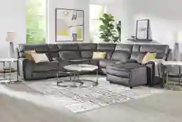 The sleek design and soothing feel of the Bradshaw Place living room brings harmony and balance to endless nights of intimate, relaxed gatherings. Traditional in style, this sectional features soft, padded arms and attached seat cushions for a luxurious touch. Contrast welting draws the perfect amount of attention to the smooth dark gray upholstery and casual sophistication, while a dual power reclining mechanism in the chaise allows personal adjustment to the head and footrest for optimal comfort. USB charging ports and stainless steel cupholders in the console are the ultimate finishing touch, providing easy access to all your relaxation essentials. Left facing recliner, armless recliner, wedge, armless chair, console, dual power reclining right facing chaise. Upholstery: 100% Polyester.