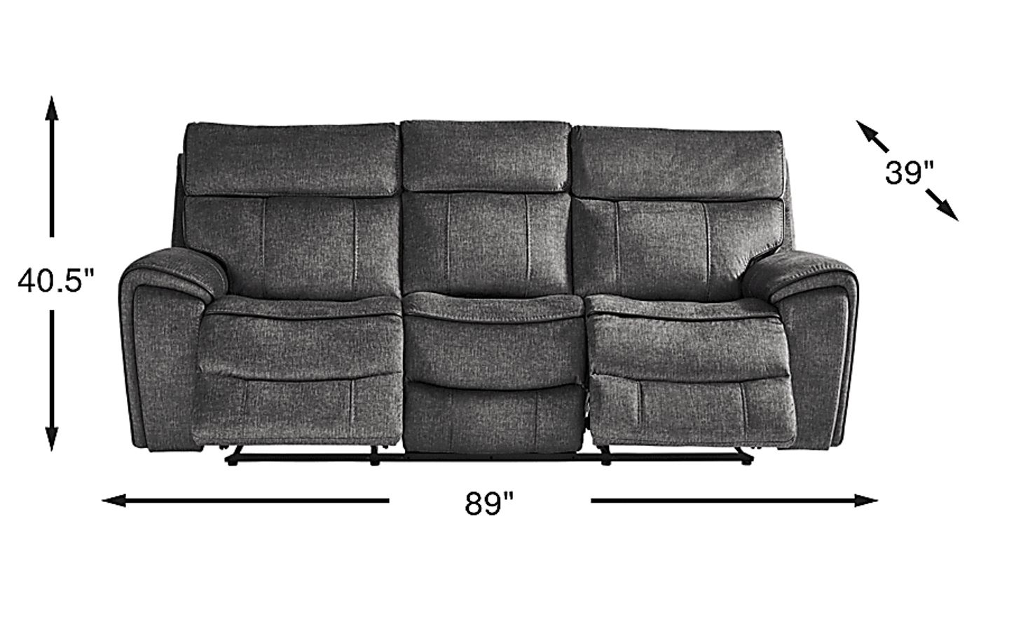 The sleek design and soothing feel of the Bradshaw Place sofa brings harmony and balance to endless nights of intimate, relaxed gatherings. Traditional in style, this piece features soft, padded arms and attached seat cushions for a luxurious touch. Contrast welting draws the perfect amount of attention to the smooth dark gray upholstery while delivering casual sophistication, while a reclining mechanism allows personal adjustment to the footrest for optimal comfort. Upholstery: 100% Polyester.
