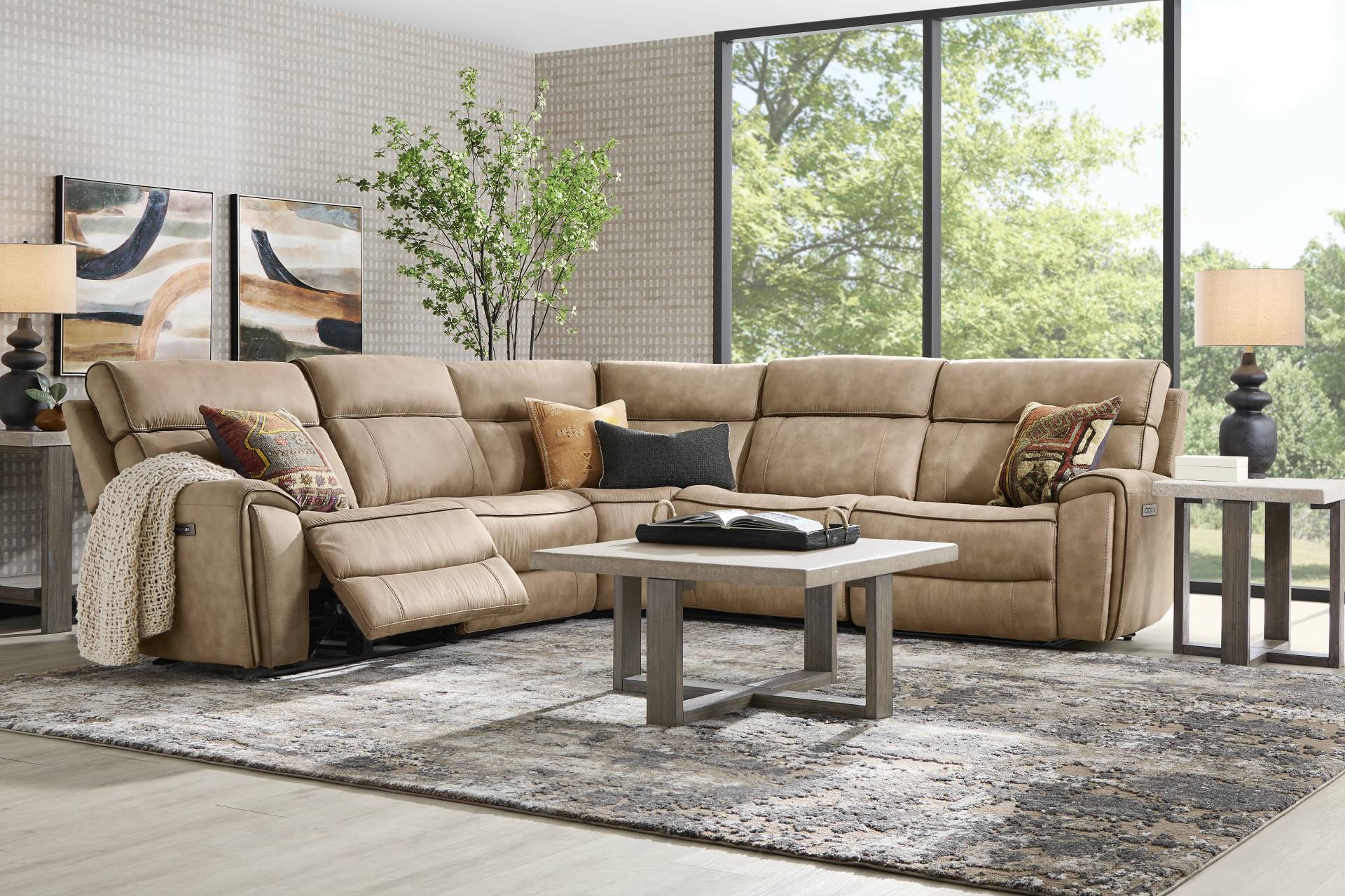 This sectional features a substantial footprint of 121 inches by 121 inches, making it a centerpiece for larger living areas or open-concept floor plans. Because it utilizes a reclining mechanism, we recommend allowing for extra clearance both behind the backrests and in front of the footrests to ensure the mechanism can fully extend without hitting walls or other furniture. Before delivery, measuring your room’s dimensions and doorways is essential to ensure a seamless fit for all five pieces.