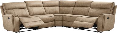 The sleek design and soothing feel of the Bradshaw Place living room brings harmony and balance to endless nights of intimate, relaxed gatherings. Traditional in style, this sectional features soft, padded arms and attached seat cushions for a luxurious touch. Contrast welting draws the perfect amount of attention to the smooth stone-beige upholstery. Dual power reclining allows personal adjustment to the head and footrest for optimal comfort, while the chaise offers power reclining for effortless adjustment to the footrest. A storage console with stainless steel cupholders is the ultimate finishing touch, providing easy access to all your relaxation essentials. Upholstery: 100% polyester.