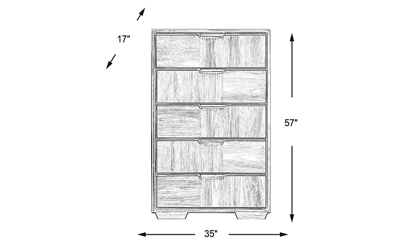 The Braedin chest delivers a sleek storage solution with a rustic contemporary look. Crafted of pine and wood solids, this piece comes in a warm pecan finish. Its five spacious drawers provide plenty of room to store clothing and accessories. Adding a unique touch, the front of each drawer features a wood grain pattern in a contrasting off-white finish. Minimalistic drawer pulls give it a mid-century modern style.