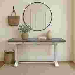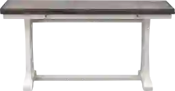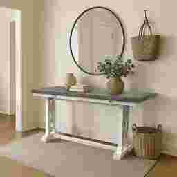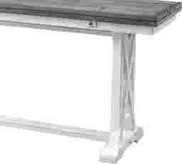 Designed to transition seamlessly from stylish accent to functional serving station, this Braedy expandable table adds versatile charm to your home. Crafted from solid pine wood and accented with elm veneers, this console table features a trestle base with pedestal legs and elegant open X-side detailing, finished in a cream white with a distressed brown/gray top - through for a coastal farmhouse aesthetic. The plank-style top opens effortlessly, extending from 18" to 36" in depth-ideal for entertaining or showcasing decor. Customer assembly is required.