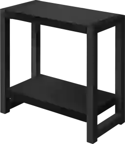 Here's an accent table that holds its own. With its thick tabletop, bottom shelf, and black metal legs, this robust Braehill accent table stands strong next to a sofa, chair, or bed. Finished on all sides, it can be positioned in any direction to fit both narrow and wide spaces. The two tiers in a black finish have ample surfaces to display items in your living room or bedroom. Boasting a clean, contemporary style, this rectangular end table coordinates with any decor. Customer assembly is required.