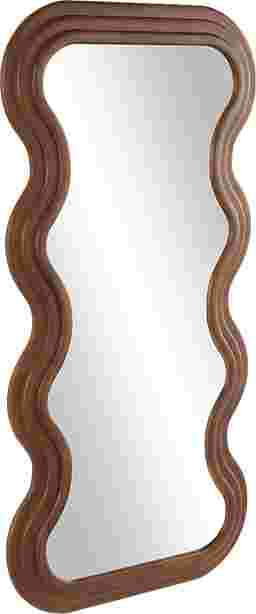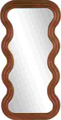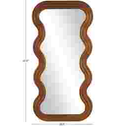 Inspired by sleek elegance and clean lines, a minimalistic design offers effortless luxury with monochromatic tones and bold, angular structures. The Braili wall mirror exudes elegance and durability. This rectangular hanging wall mirror has an oiled brown wood finish with a dimensional carved frame. The wood wall mirror features a wavy design and dimensional carved frame, making it a stunning piece.