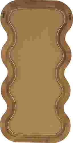 Based on our expertise in furniture care, we recommend dusting the carved wood frame regularly with a soft, dry cloth to prevent debris from settling into the wavy grooves. For the glass, use a standard glass cleaner applied to a cloth first—rather than sprayed directly onto the mirror—to prevent liquid from seeping behind the frame and damaging the wood or silvering. Avoid harsh chemical solvents, as they can strip the oiled finish.